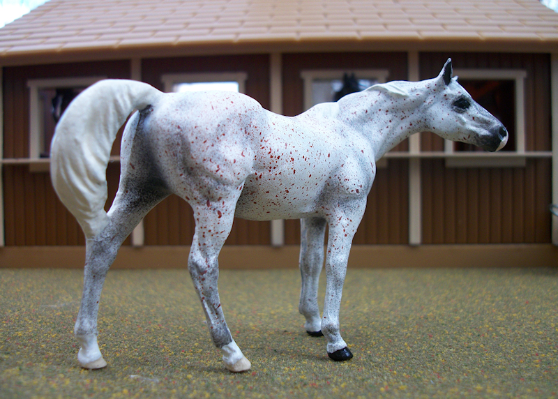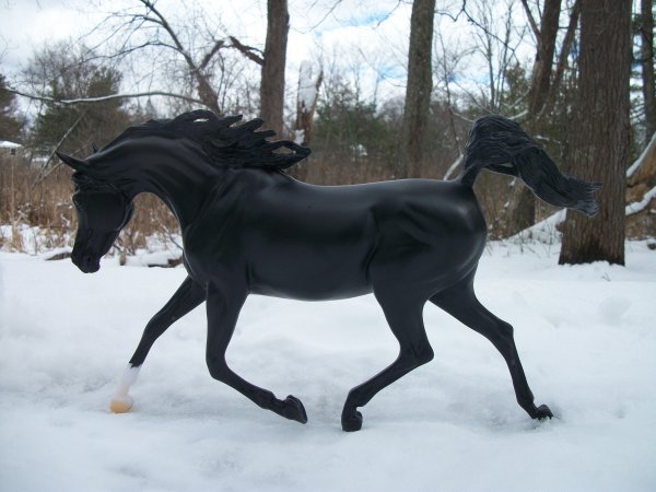 Bedouin legends tell the story of a group of mares who were known as the Al Khamsa–the five. These were the five favorite mares of Muhammed. According to legend, a tribe of Bedouin, after a long journey across the desert, released their mares to run to a watering hole to drink. As a test of loyalty, Muhammed blew his horn to call the mares back to him. The five which returned became the Al Khamsa, the foundation mares of the five strains.