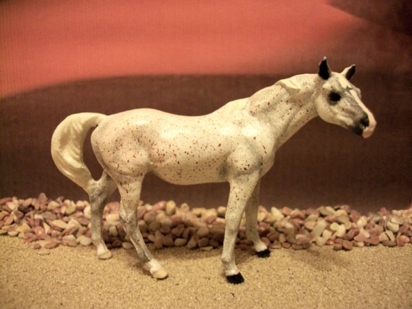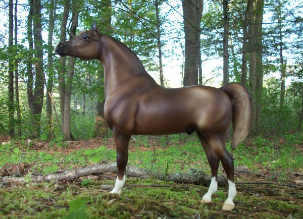 Tammen: [R] The great chestnut stallion owned by Patrick Swayze and Lisa Niemi; 2002 and 2005 Egyptian Event Leading Halter and Performance Sire; 2004 and 2006 Leading Performance Sire. A producer of fantastic get, especially mares (Tammen produced only 23 sons out of a foal crop of 86, one of which was Kuhaylan Roh), we chose Tammen as a model and source for our breeding program at Blue Jackal Arabians in 2010, and continue those lines now here at Silk Road Arabians, not because of the celebrity status of his owner, but because of how Patrick Swayze used that status to further the educational programs of the Arabian Horse Association, and most especially their programs for Youths. After all, the entire purpose of including real horses in model horse pedigrees is to educate: to ignite an undying interest in the real horses and the real breeds.